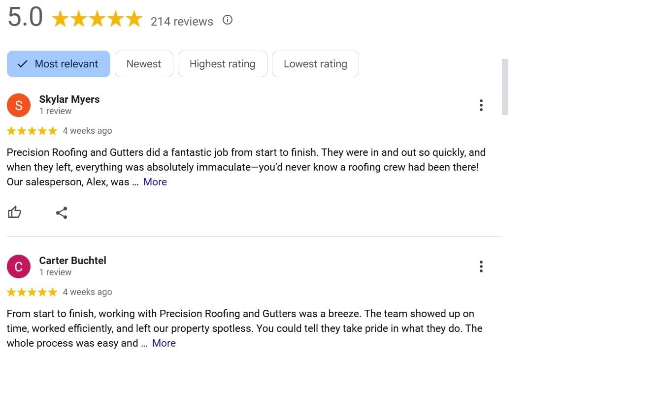 Copyright 2025. Precision Roofing & Gutters, All Rights Reserved